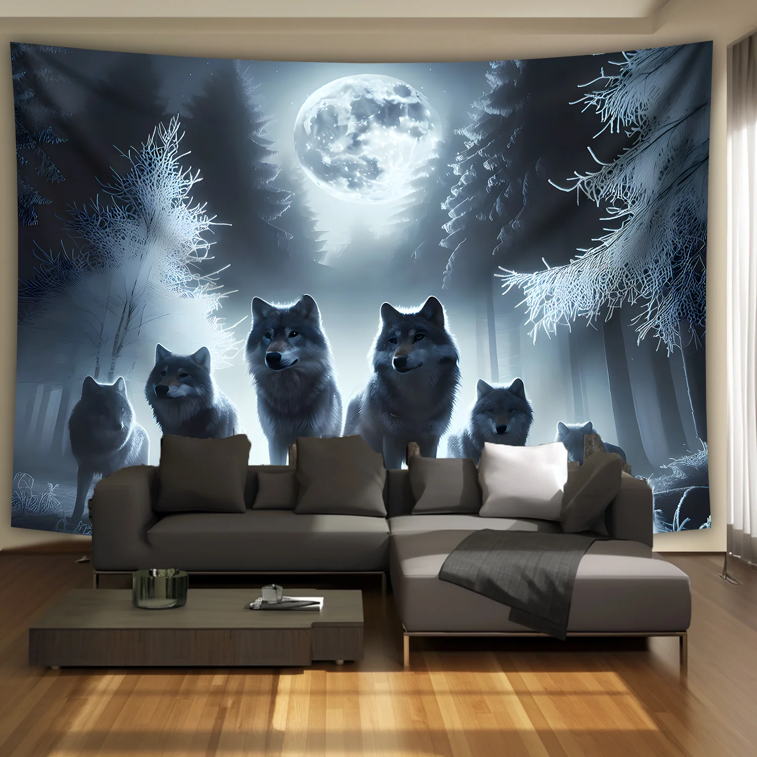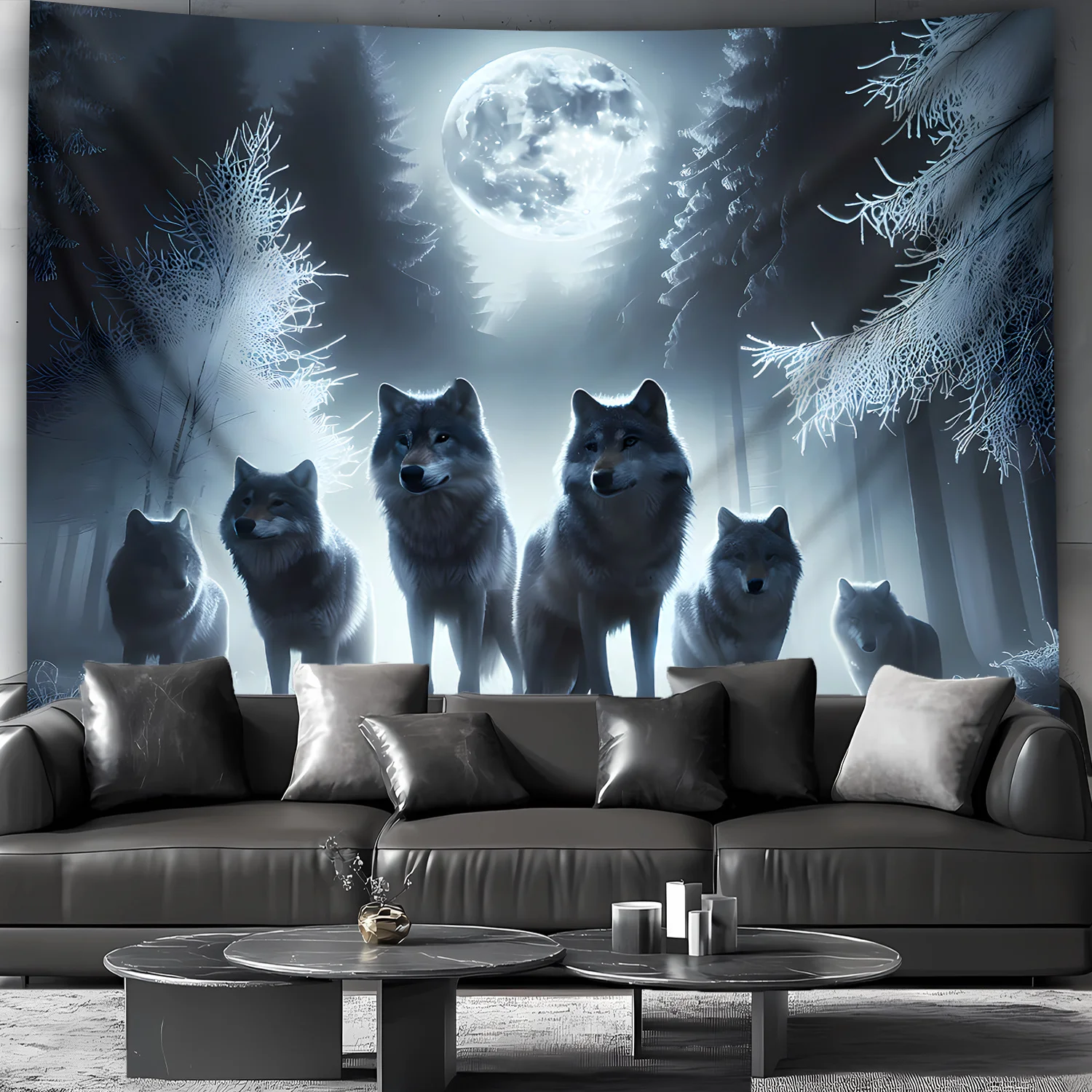 Wolf King Moonlit Forest Tapestry Full Moon Nordic Style Living Room Gaming Streamer Room Men's Room Decor